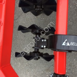 Главным отличием дисковой бороны БДМ-В КОРТЕС является то, что стойка режущего узла установлена на эластомерах. При этом диск легко объезжает камни.