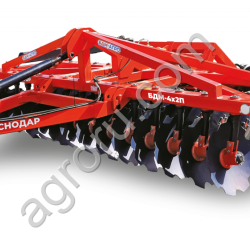 Четырехрядная борона дисковая модернизированная БДМ с подшипниковым узлом внутри сферы диска, с дисками на индивидуальной стойке, с изменением угла атаки дисков синхронно в каждом ряду, предназначена для поверхностной обработки почвы на глубину до 17см, уничтожения сорняков и измельчения пожнивных остатков. За счет равномерного перемешивания земли с растительными остатками эффективно применение бороны дисковой на почвах подверженных ветровой и водной эрозии. Растительные остатки, равномерно перемешанные с верхним слоем почвы, защищают почву от выдувания и вымывания, улучшают воздушный обмен. При этом растительные остатки, находясь в земле, активно превращаются в перегной, повышая плодородие почвы.