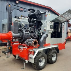 Дизельная насосная установка с антивандальным капотом на двухосном шасси, с грузоподъемной стрелой для эффективного и безопасного обслуживания насосной станции, а так же с напорным трубопроводом в безопасном исполнении с выходом вне зоны работы оператора.