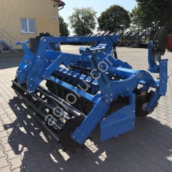 Пружинный механизм стойки обеспечивает копирование и выравнивание почвы без забивания растительностью, ступица необслуживаемая, с диском 610 мм, изготовлена по аналогу Lеmkеn Rubin с применением кассетного уплотнения и двухрядным шариковым радиально-упорным подшипником. Тандем двух катков: трубчатый + планчатый диаметром 400 мм, эффективно производит крошение и прикатывание почвы. Усиленная рама из специальной стали толщиной 14 мм обеспечивает надежность при сверхнагрузках.