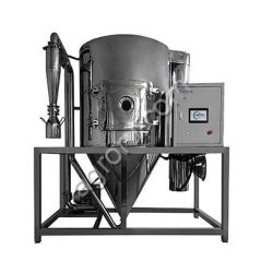 Технология процесса: подготовленный заранее продукт и нагретый до температуры 73-80ºC, насосом подается в камеру сушки через дисковый распылитель, что позволяет получить однородный, равномерно распределенный туман, содержащий частицы продукта.