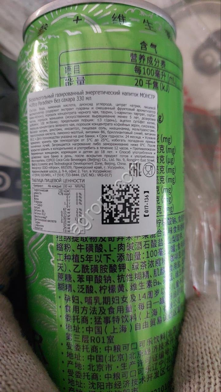Monster Energy (Ultra Paradise) поставки напрямую от производителя Coca-Cola.