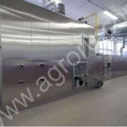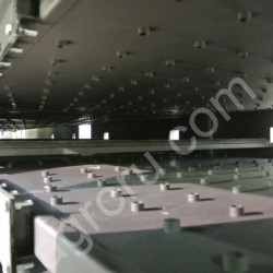 Пример аксонометрического вида в разрезе двухэтажной циклотермической ленточной печи РРР с сетчатой конвейерной лентой. Речь идёт о конфигурации противоток с пересадочным конвейером между этажами: