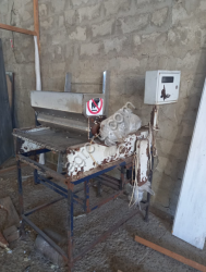 Ролики в тестораскаточной машине из нержавеющей стали. В линии отсутствует тестомес. Оборудование изготовлено самостоятельно