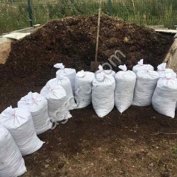 Полностью перегнивший коровий навоз в мешках готовый к удобрению почвы.