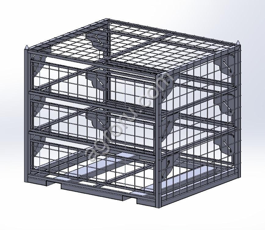 -Состоит из 32 отсеков (по16 отсеков с каждой стороны) размерами 600х965мм, огражденных между собой оцинкованной сеткой(горячее цинкование).