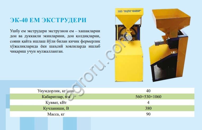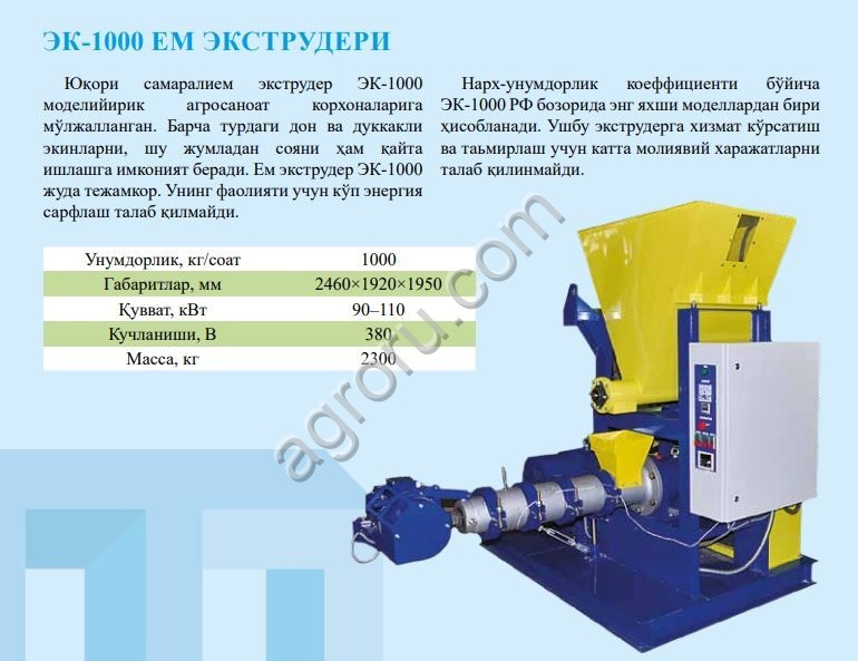 Кормовой экструдер предназначен для производства высокоэффективного