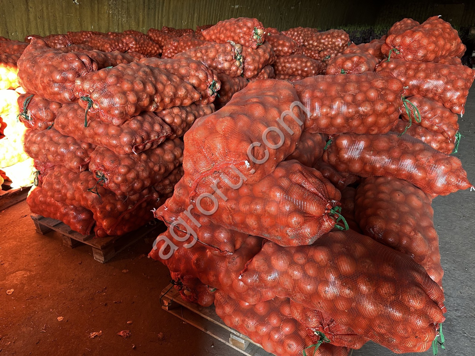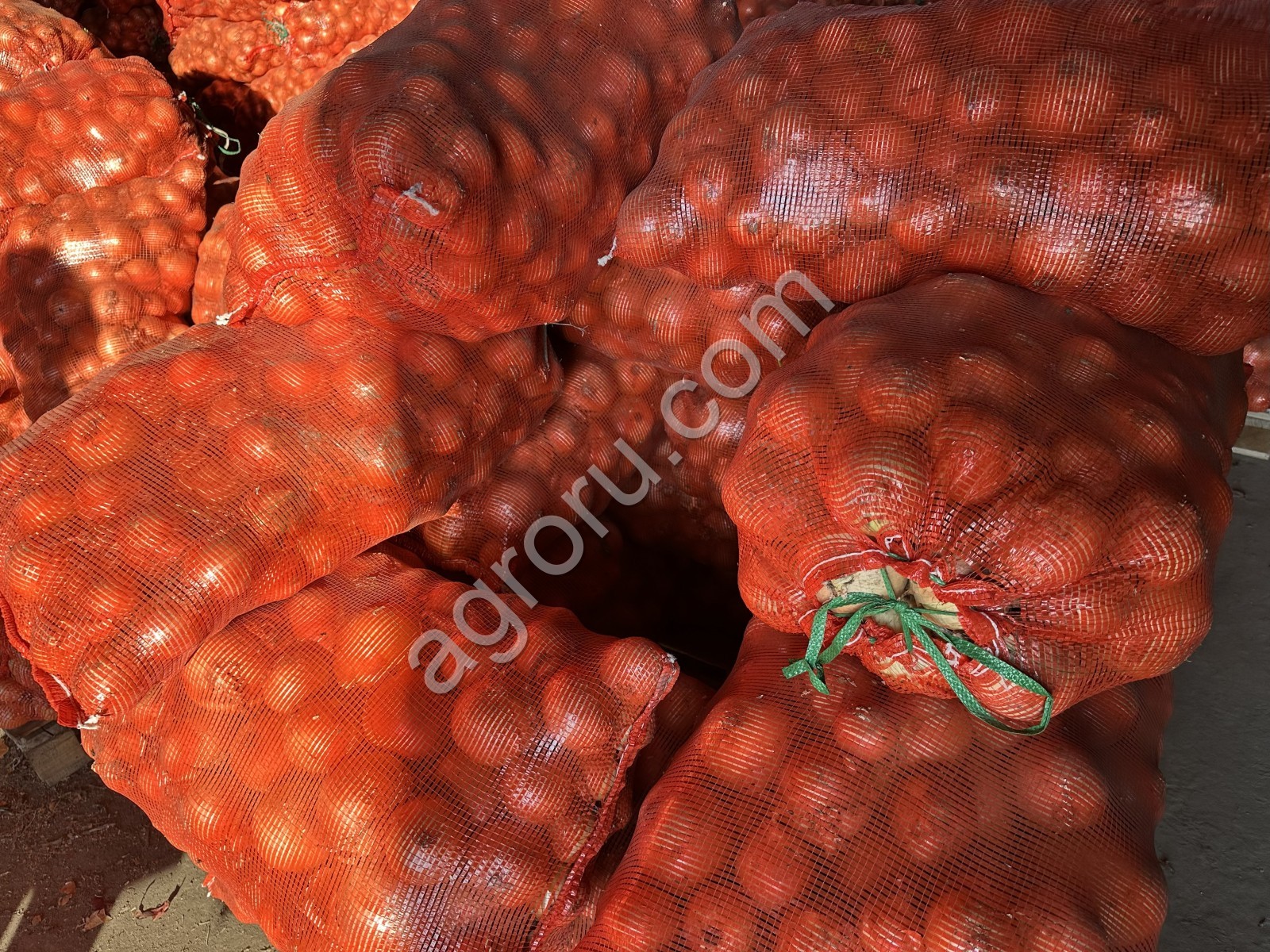 Лук репчатый свежий очищенный в овощной сетке, 30 кг нетто.