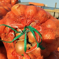 Лук репчатый свежий очищенный в овощной сетке, 30 кг нетто.