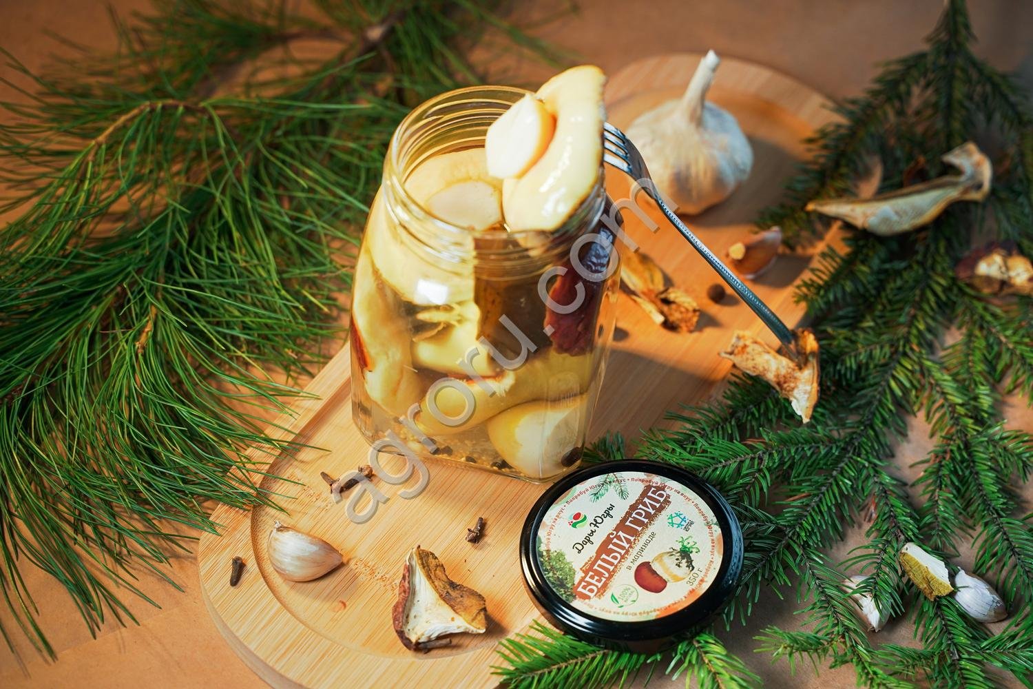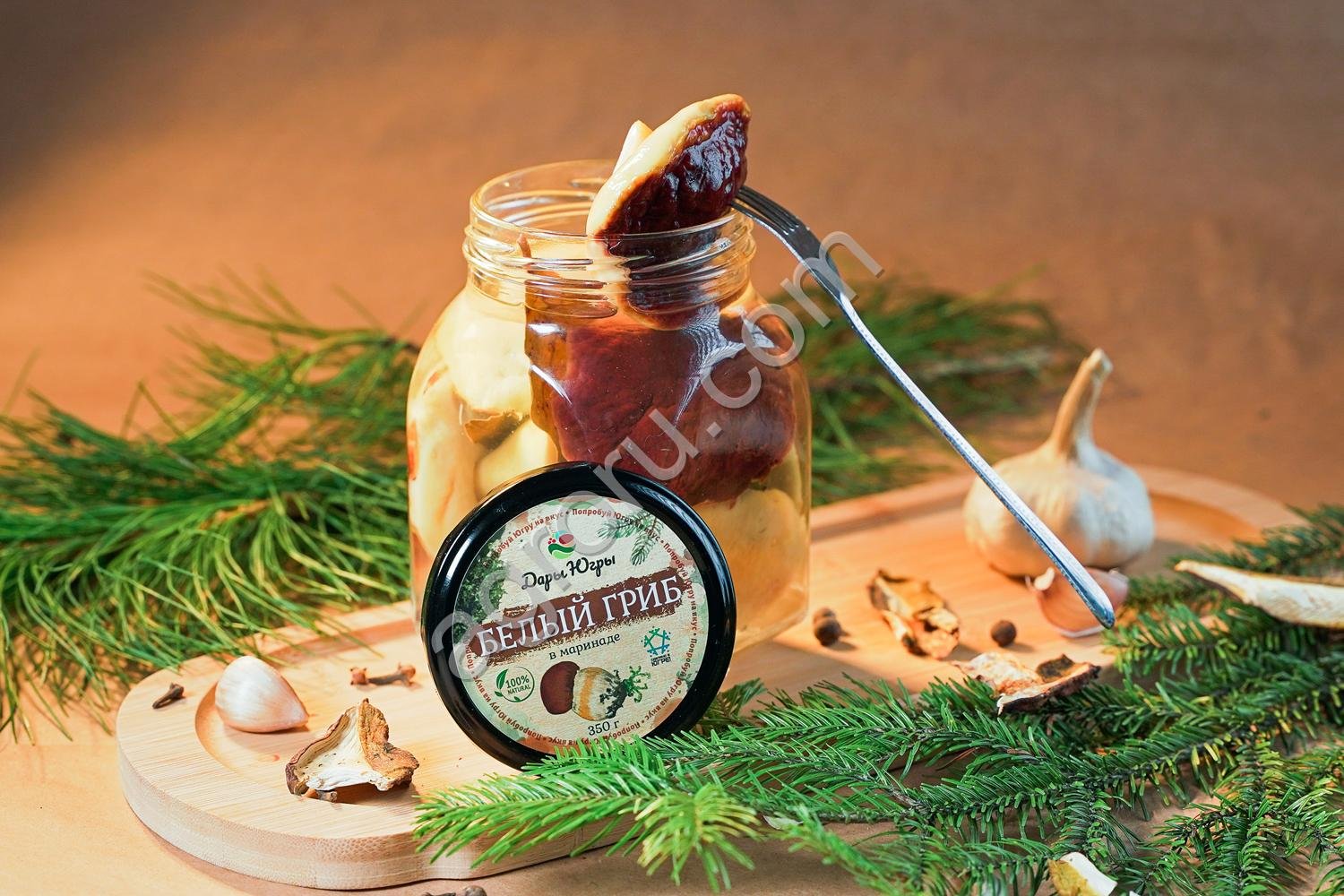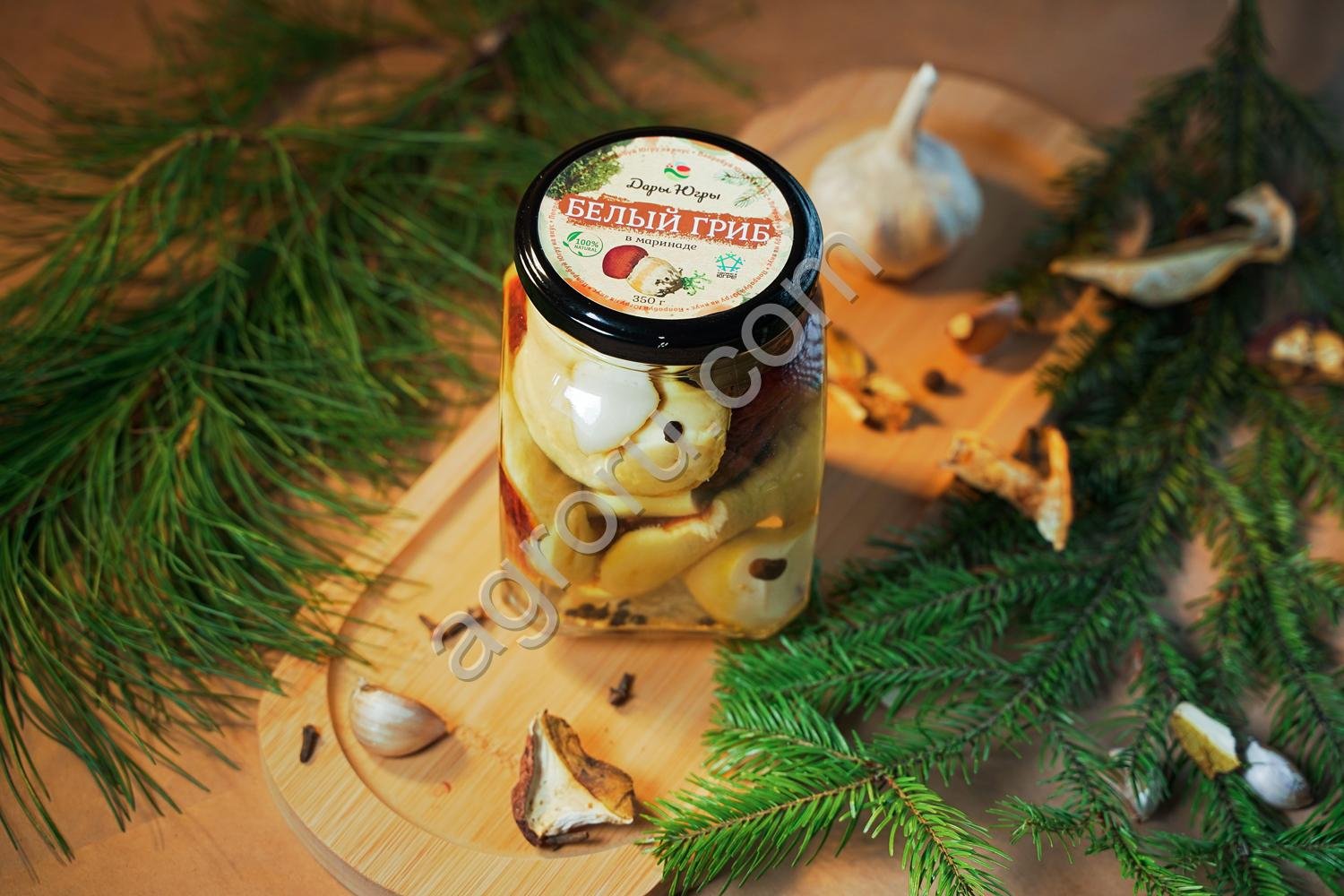 Маринованные белые грибы боровики цельные / ДАРЫ-ЮГРЫ-ХМАО / 350 гр