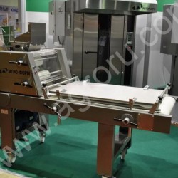 Описание: предназначена для раскатки теста и заготовки багетов. Тесто сначала раскатывается между двумя парами валков, а затем закатывается в заготовку цилиндрической формы с помощью прижимной доски, силу давления которой можно регулировать.