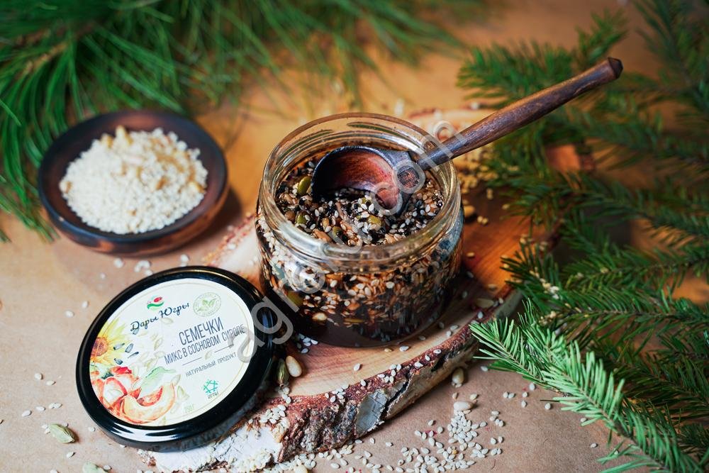 Микс из семечек (тыква, кунжут, подсолнечник) в сиропе из молодых сосновых шишек / ДАРЫ-ЮГРЫ-ХМАО /