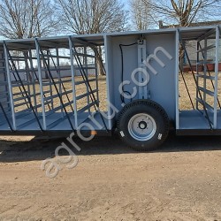 Прицеп для перевозки скота ТПС-6У предназначен для круглогодичной перевозки животных на пастбища, внутри ферм и комплексов. Прицепы оборудованы системой гидравлически опускаемого кузова, что позволяет безопасно загонять/выгонять животных. Отсеки между собой разделены перегородками, которые в закрытом состоянии исключают возможность перемещения скота из одного отсека в другой. Задние двери распашные. Крыша выполнена из стальной трубы со съемным ПВХ-тентом . Рама шасси прямоугольная из стальных профилей.