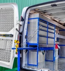 В небольшой объем автомобиля встраиваются - трансформируемые и выдвижные верстаки, стеллажные шкафы в различной комплектации, мобильные лестницы, тиски, баллоны, гидравлические краны, компрессоры, выездные траппы и т.д.