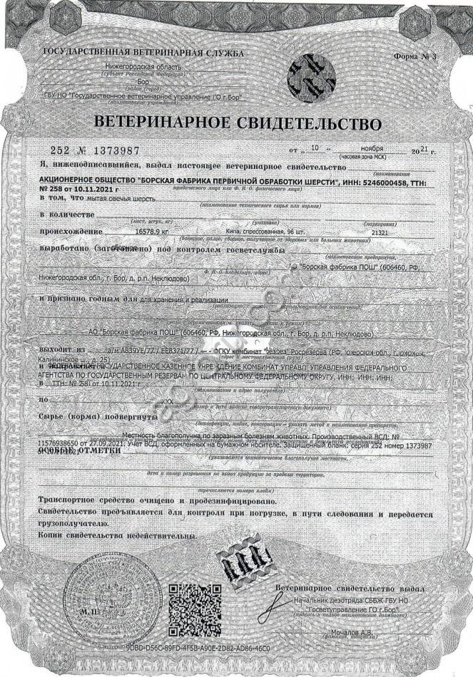 Объем: 199 тонн, сертификат и ветеринарное свидетельство прилагаются на каждую отправленную партию