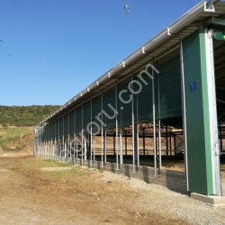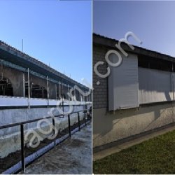 Ветрозащитные шторы для вентиляции животноводческих помещений. Использование специальных материалов обеспечивает достаточное естественное освещение внутри здания и надежную защиту от ультрафиолета и атмосферных воздействий (ветер, дождь, снег и т. д.).