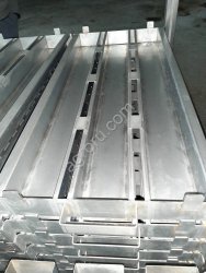 Конструкция представляет собой жесткую сварную раму изготовленную из П-образного гнутого профиля толщиной 2мм, в верхней части -по углам которого расположены уголки-ограничители,предотвращающие соскальзывание груза с платформы. В нижней части рамы расположены три пары колёс Ф160мм-которые обеспечивают перемещение. В торцы поперечных профилей вварены проушины для съёмного транспортировочного крюка. Материал изготовления- нержавеющая сталь AISI-430. Габаритные размеры тележки могут быть выполнены в соответствии с требованиями заказчика.