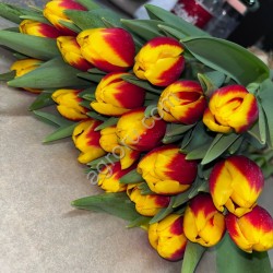 Тюльпаны упакованы в специальную бумагу, в пучки по 20 шт.
