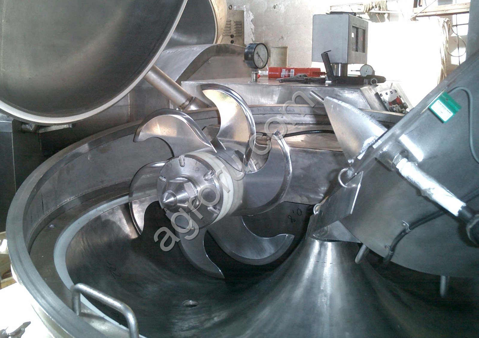 Привод ножевого вала частотный преобразователь. Привод редуктора чаши - частотный преобразователь. Плавная регулировка оборотов привода ножевого вала и привода чаши обеспечивает высокое качество вырабатываемого фарша. Применение частотных преобразователей при куттеровании снижает затраты электроэнергии до 30%.