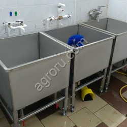 Ванна предназначена для санитарной обработки и механической мойки ведер на молочно-товарных комплексах. Соответствует санитарно-эпидемиологическим требованиям к содержанию и эксплуатации доильно-молочного оборудования и инвентаря.