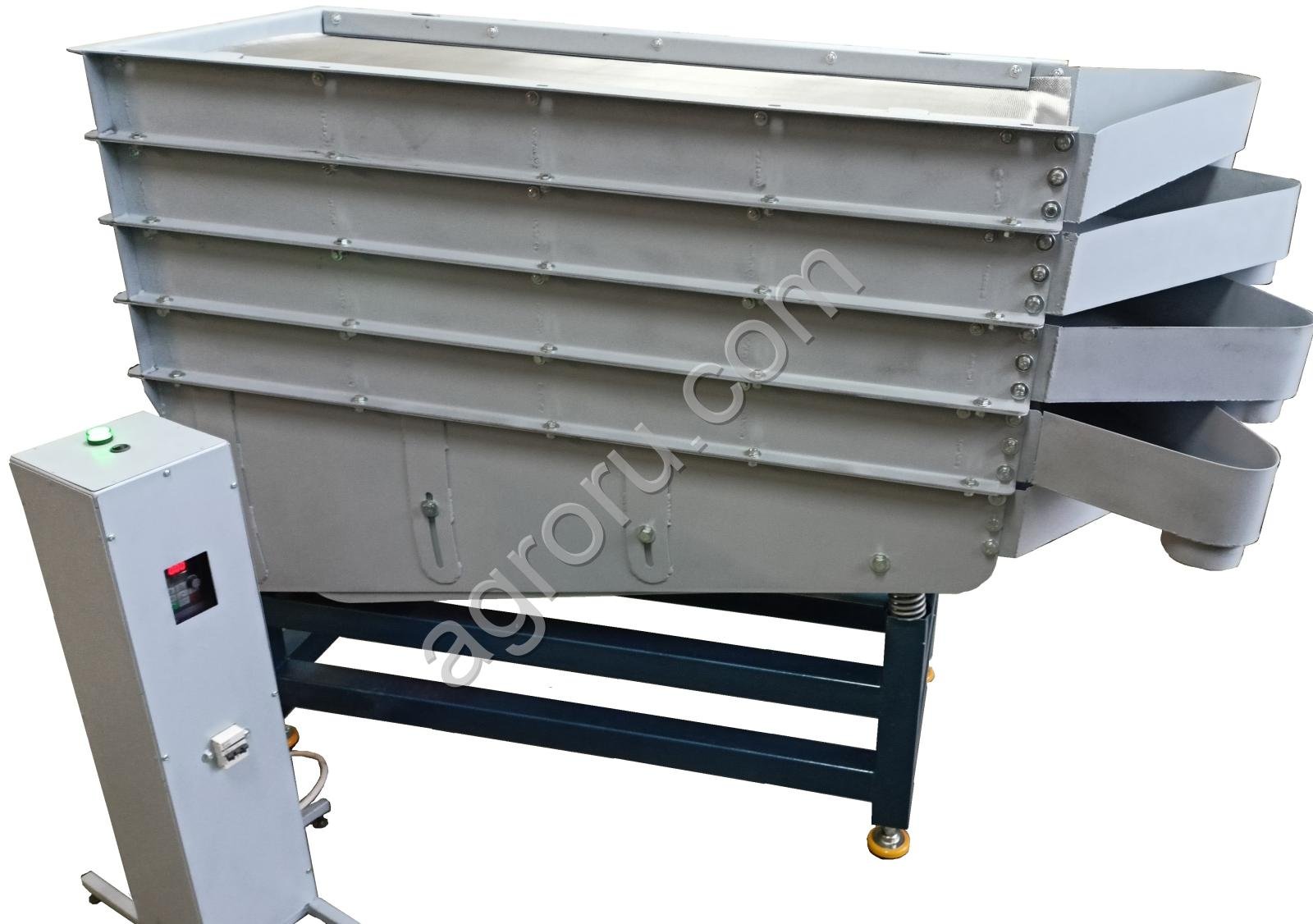 Вибросито-калибратор предназначено для разделения продуктов на фракции по размеру. Вибросито позволяет разделять продукт на четыре фракции включая особо мелкую. Привод вибратора оснащен частотным преобразователем, позволяющим регулировать частоту вибрации и качество просеивания.