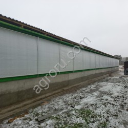 Данный вид штор часто называют воздушные или надувные, но их особое предназначение - сохранение тепла в коровнике, поэтому также используется название термо-шторы. Система термо-штор Agrotel открывается сверху вниз. Внизу она складывается. Благодаря изолированным воздушным камерам, из которых состоит система, шторы данного типа в закрытом состоянии хорошо обеспечивают тепло и звукоизоляцию . Стабильность конструкции обеспечивают С профиля с резиновыми прокладками. Система воздушных штор выполнена из прочного мембранного материала - сочетаниие ПВХ и ткани, устойчивого к разрыву. Страна производитель Германия (Agrotel).
